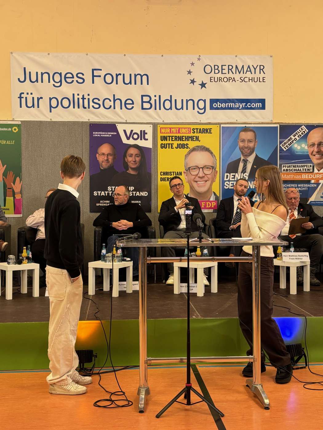 FDP Wiesbaden bei der Podiumsdiskussion der Obermayr-Europa-Schule